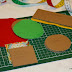 Eu escolhi pano vermelho, verde, amarelo e estampado para este trabalho. Não é preciso muito, por isso talvez com restos de material também dê para se realizar esta experiência. Recortei ainda os moldes em cartão. Usei o cartão de um pacote que veio na entrega de uma encomenda pelo correio. Há que aproveitar tudo o que se pode reutilizar! A minha avozinho dizia "Quem guarda acha" O meu marido é que não acha muita piada ao que ele chama tralha que se acumula. (E com alguma razão!)